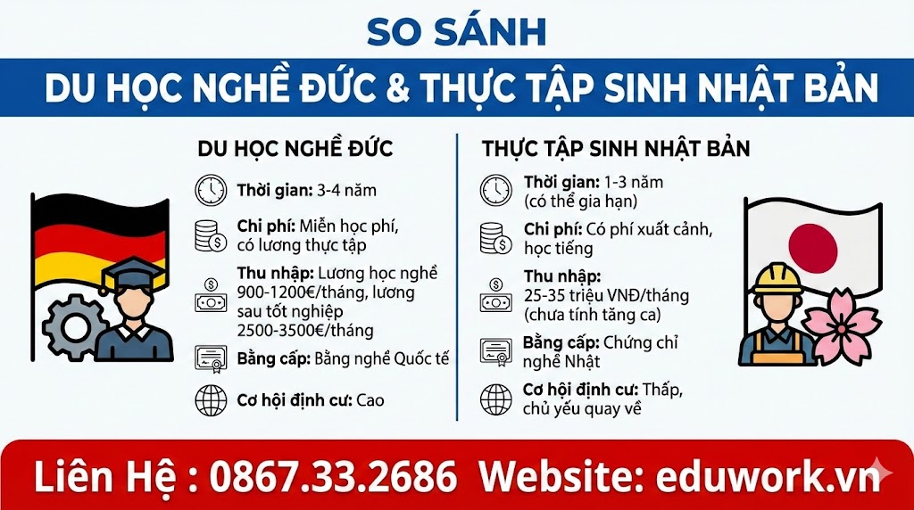 SO SÁNH DU HỌC NGHỀ ĐỨC VÀ THỰC TẬP SINH NHẬT BẢN BẠN CHỌN ĐI ĐÂU NĂM 2026