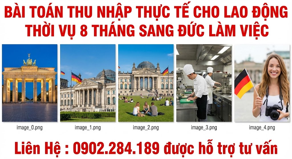 • Thuế & Bảo hiểm xã hội: Lao động thời vụ ngắn hạn (dưới 70 ngày làm việc) có thể được miễn đóng BHXH nhưng vẫn chịu thuế thu nhập (Lohnsteuer - thường là mức khoán 5% hoặc 25% tùy hợp đồng). Nếu làm dài hơn (như bạn mong muốn 8 tháng), bạn BẮT BUỘC đóng full thuế và bảo hiểm (~30-35% lương).