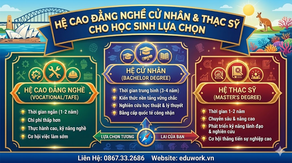 Du học Úc năm 2026 yêu cầu sự chuẩn bị kỹ lưỡng về cả học thuật lẫn tài chính. Tuy nhiên, với lộ trình đúng đắn và sự hỗ trợ từ các chuyên gia giàu kinh nghiệm, cánh cửa đến với các thành phố như Sydney hay Melbourne hoàn toàn nằm trong tầm tay bạn.