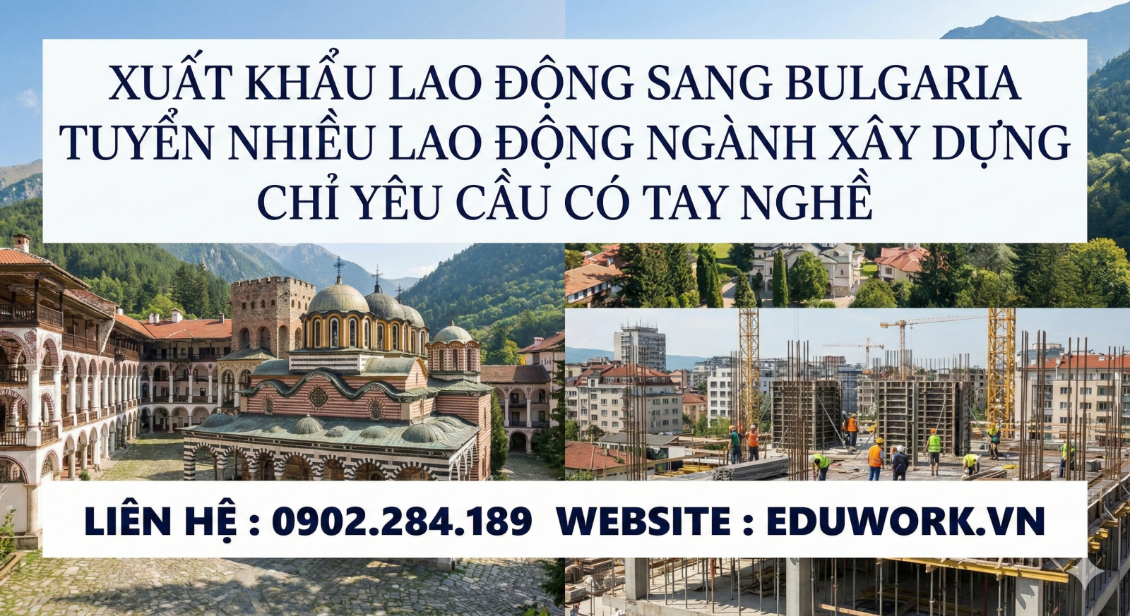 • Thợ Xây Dựng: Bao gồm xây chát, ốp lát, cốp pha, thợ sắt, Thạch cao... Yêu cầu thợ có tay nghề cứng, chịu được áp lực tiến độ. Các công trình tại Bulgaria thường tuân thủ an toàn lao động rất cao theo chuẩn EU.