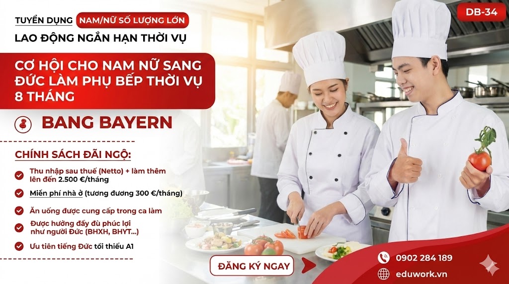 Với tư cách là một chuyên gia có cái nhìn xuyên suốt về sự dịch chuyển lao động toàn cầu, tôi khẳng định đây là "thời điểm vàng" để người lao động Việt Nam đặt chân đến Đức. Dưới đây là thông tin chi tiết và phân tích chuyên sâu về đơn hàng Phụ bếp (Kitchen Assistant) đang được săn đón nhất hiện nay.