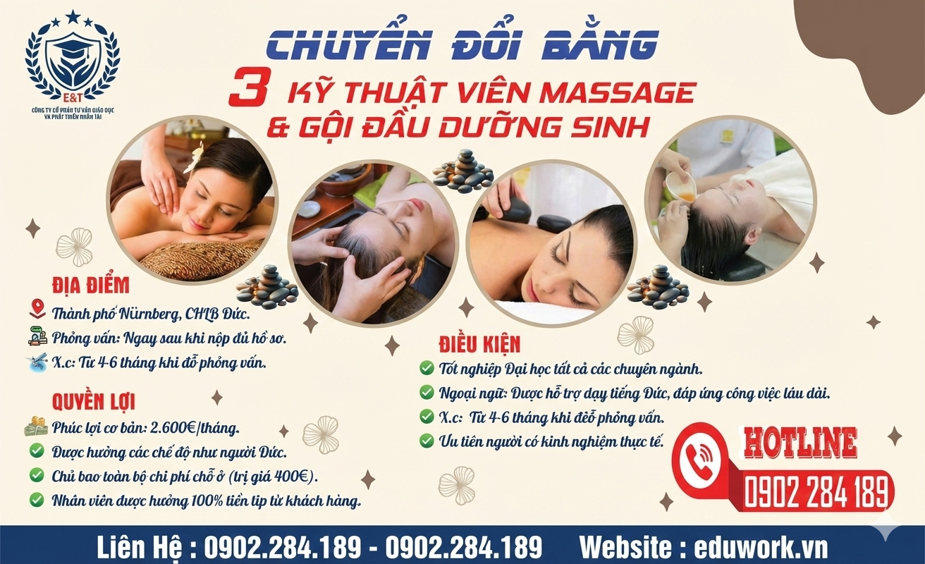 Điều kiện và chính sách chế độ cho lao động tại Đức ngành Massage và Dưỡng sinh